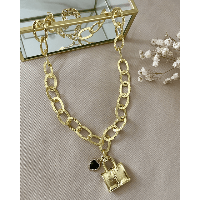 Un collar simplemente maravilloso, elaborado con maxi eslabones ovalados efecto martillado enchape oro 18 k de 3 cm cada uno