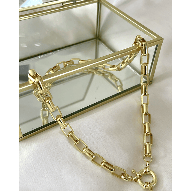 Este Collar tiene un diseño maravilloso de maxi eslabones rectangulares gruesos enchape oro 18 k